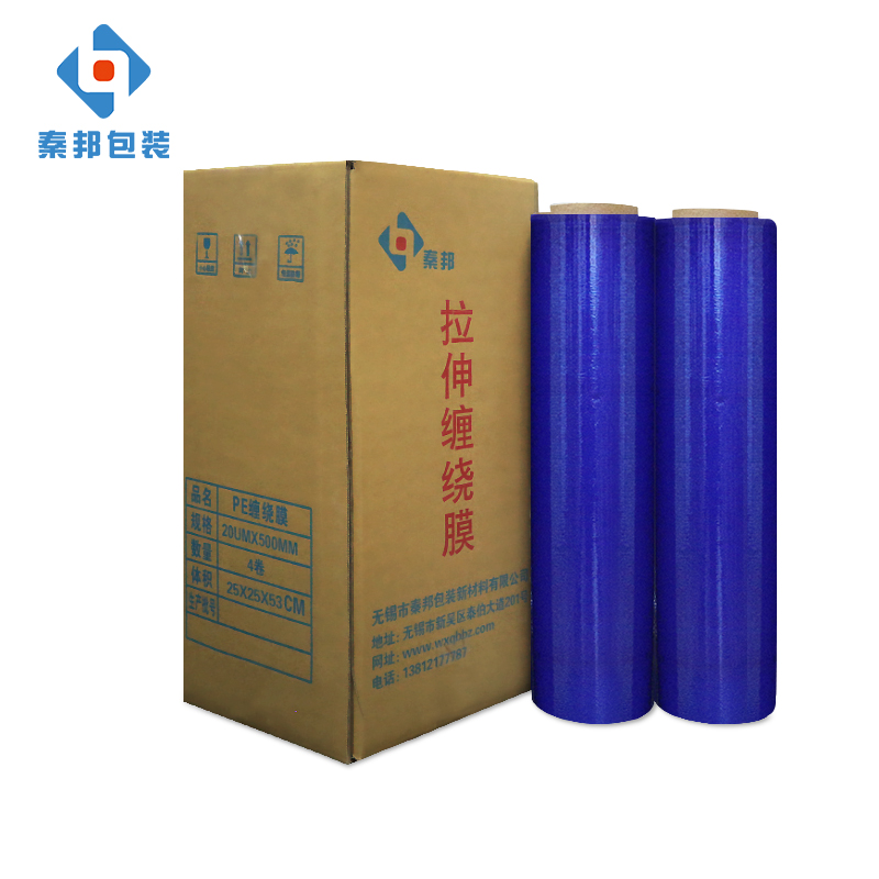 PE拉伸膜/纏繞膜,又稱LLDPE彈性膜/包裝膜,是一種透明、富有彈性及強度且無毒無害的柔軟聚乙烯塑料薄膜,符合國際環保衛生標準,可在不加熱的情況下,進行縱橫雙向冷拉伸,依靠它本身自粘性包裝各種產品,并可使貨物長期保持張力而不至于松散,強度高、彈性拉力大、對任何形狀的物品都能裹緊,裹成一個整體。拉伸包裝比收縮包裝節省材料,且不需要收縮包裝機節省能源;具有良好的防松散、防雨、防塵、防盜等效果。有單面粘性的產品,減輕運輸貯存中灰塵、沙粒,對膜表面污染。
